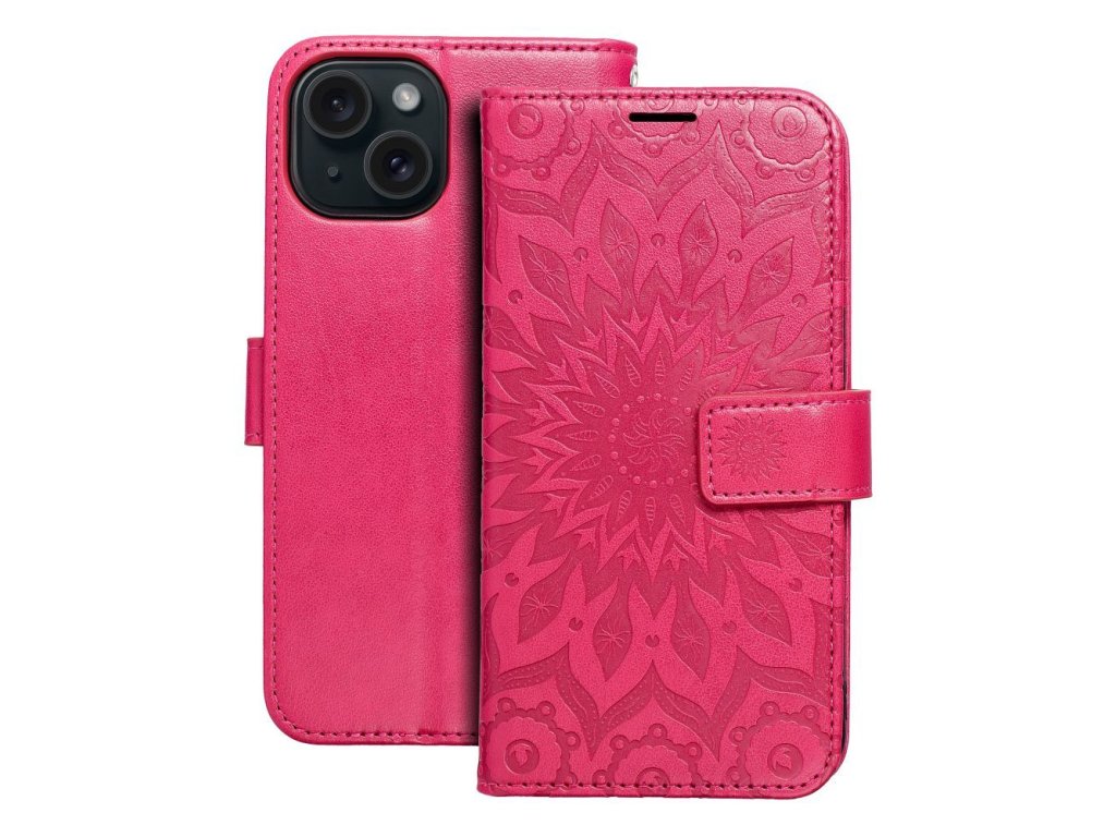 Pouzdro Forcell MEZZO Book APPLE IPHONE 15 mandala purpurové