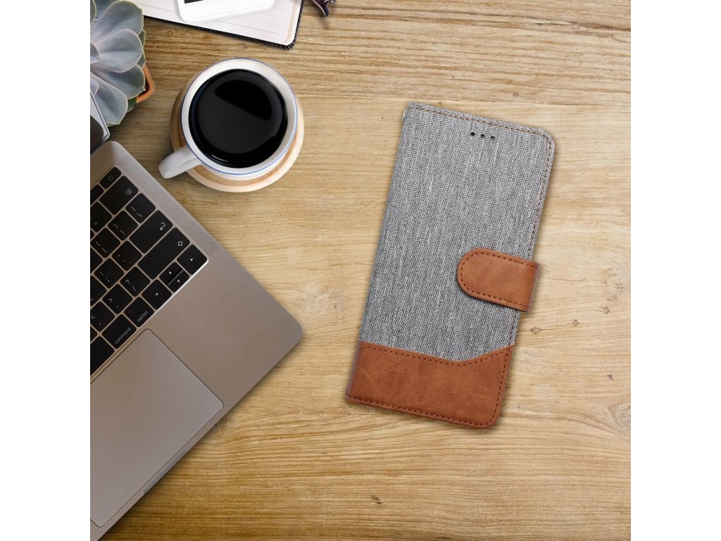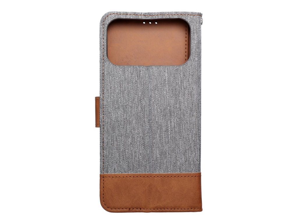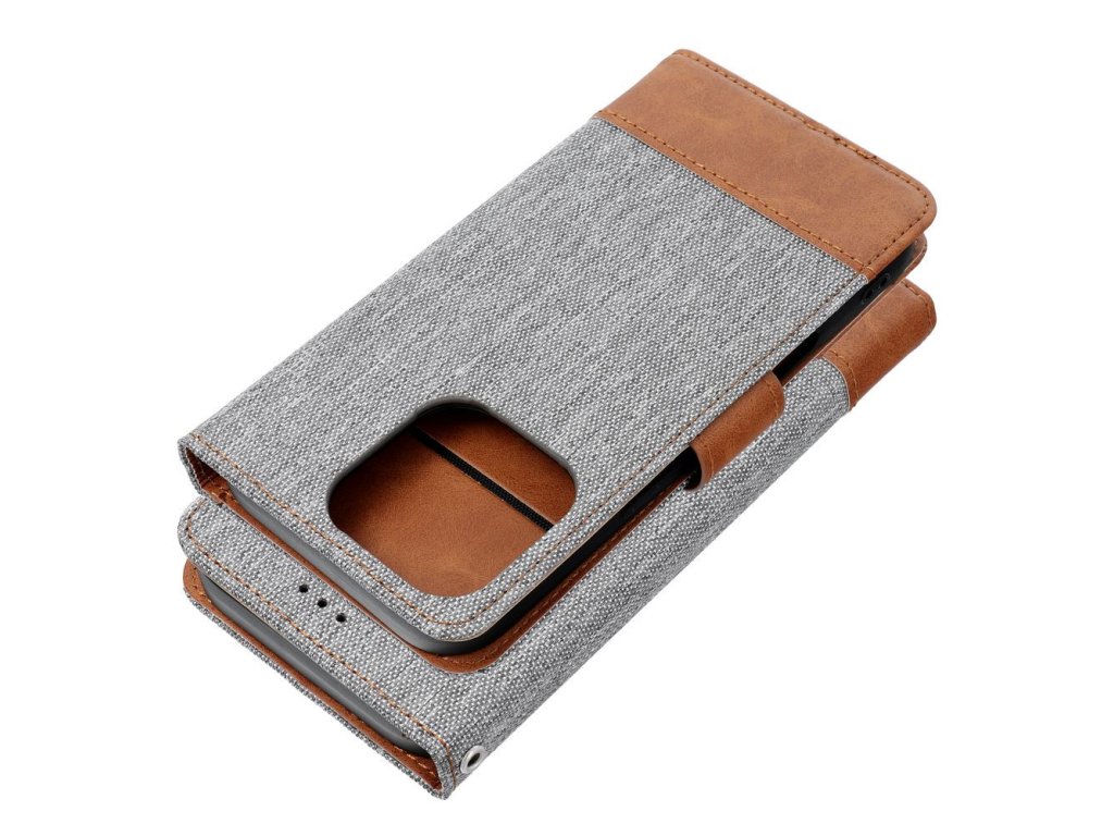 Pouzdro na iPhone 17 Pro Max Jeans Book šedé – peněženkové, kapsy