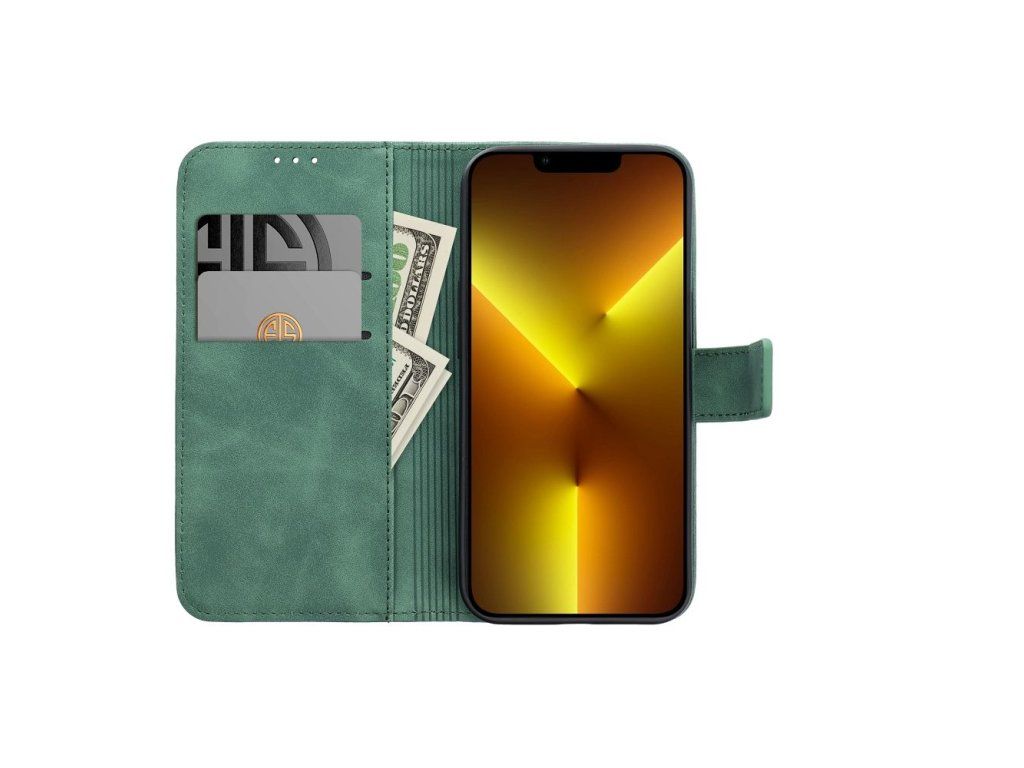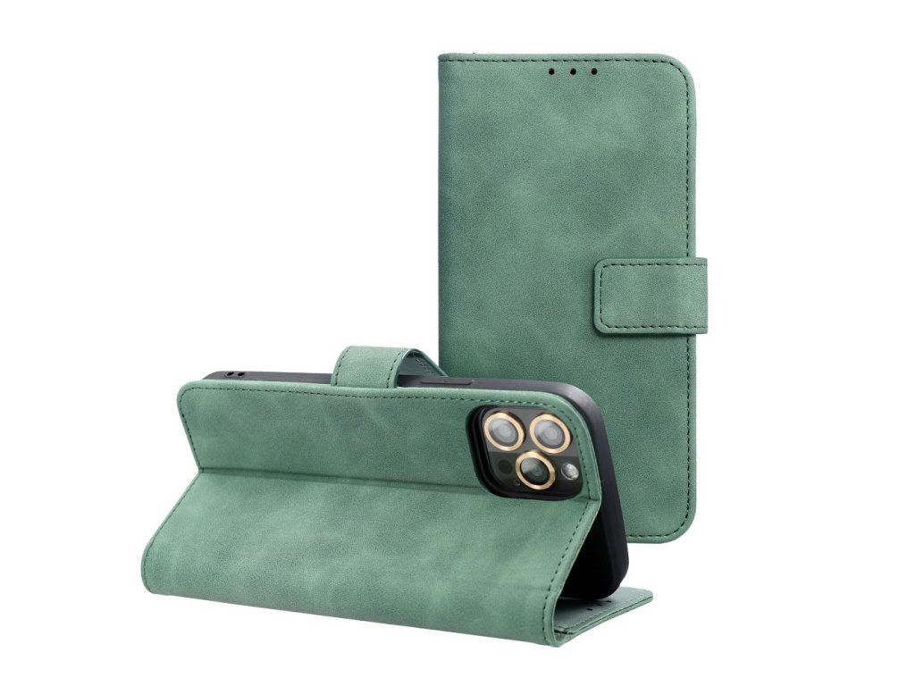 Pouzdro na iPhone 17 Pro Tender zelené – peněženkové, magnet, TV stand
