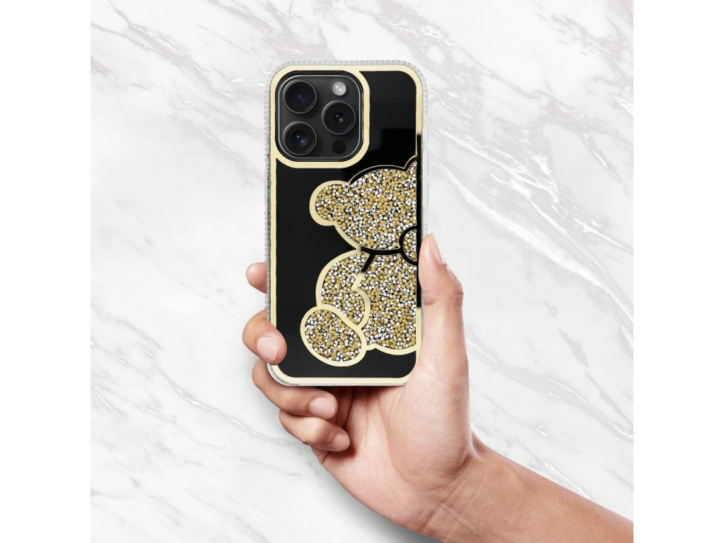 TEDDY BEAR je stylové a funkční pouzdro pro APPLE IPHONE 13, které se vyznačuje charakteristickým, třpytivým vzorem sedícího medvídka. Vzor je složený z třpytivých kamínků různých barev, zbytek zadní části je v zrcadlovém lesku a okraje pouzdra jsou navíc ozdobeny dvěma řadami zirkonů. Pouzdro přitahuje pozornost a je určeno pro lidi, kteří oceňují módní vzhled.