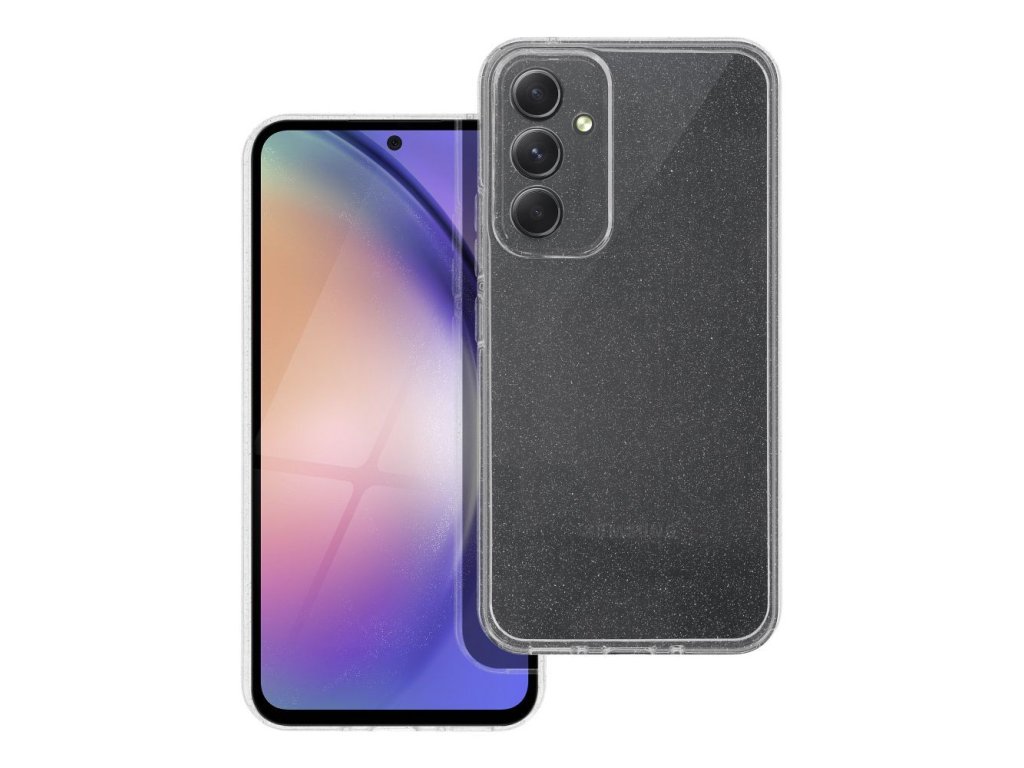 Pouzdro CLEAR Case 2mm BLINK pro SAMSUNG Galaxy A54 5G je vyrobeno z kvalitního, 2 mm silného flexibilního TPU s jemnými stylovými třpytkami, který telefon neztlušťuje a zároveň jej chrání před poškozením při pádu. Zvýšený okraj kolem ostrůvku fotoaparátu chrání jeho čočky.