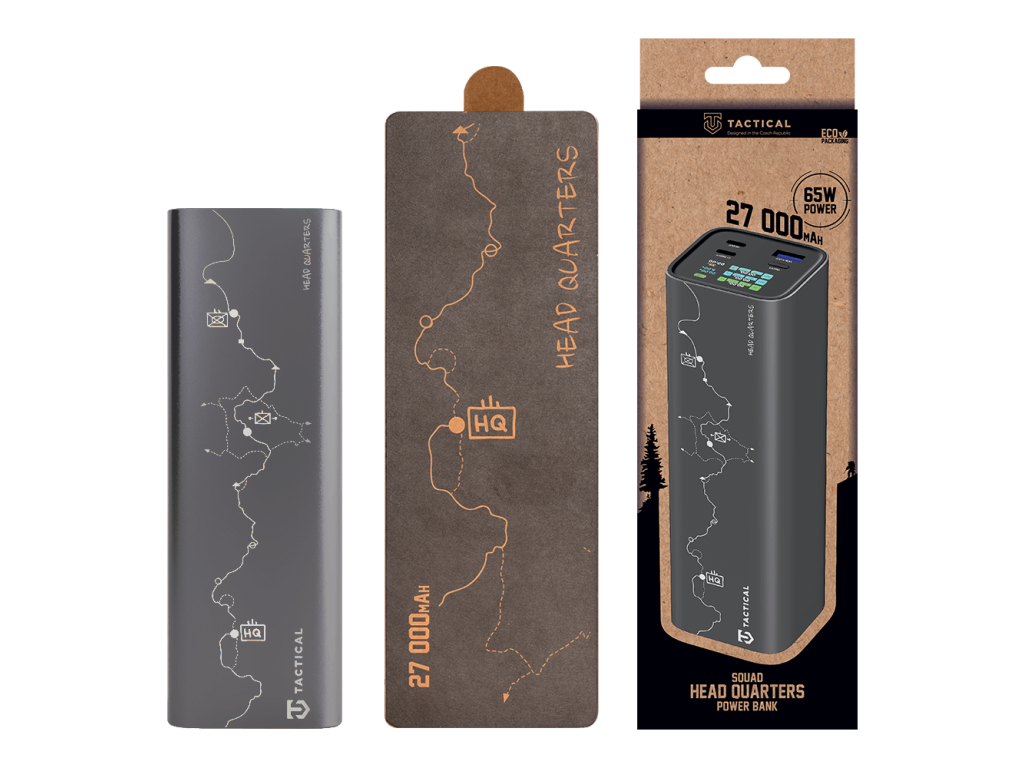 TACTICAL SQUAD HEADQUARTERS Energie, když ji potřebuješ. Bez limitů. Powerbanka Tactical Squad Headquarters je navržená pro uživatele, kteří potřebují spolehlivé a výkonné nabíjení na cestách. Díky celkovému výkonu až 65 W zvládne bez kompromisů nabíjet vše od smartphonů přes tablety až po notebooky. Kapacita 27 000 mAh ti poskytne dostatečnou rezervu energie – ať už jsi na cestách, pracuješ na dálku nebo jsi v terénu. VÝKON 65W & KAPACITA 20000mAh Tohle není jen obyčejná powerbanka na telefon. Díky výkonu až 65 W přes USB-C a kapacitě 27 000 mAh zvládne Tactical Squad Headquarters nabíjet i náročnější zařízení jako MacBooky, ultrabooky, tablety nebo rychlonabíjecí smartphony. TFT & PORTY Žádné dohady. Vždy přesně víš, co se děje. Integrovaný TFT displej zobrazuje: aktuální vstupní/výstupní výkon, stav baterie a průběh nabíjení. Nabíjej více zařízení současně bez ztráty výkonu. 2× USB-C pro moderní vysokorychlostní nabíjení, 1 x USB-A port. HLINÍKOVÉ TĚLO S EXPEDIČNÍM VZOREM Konstrukce z hliníkové slitiny zvyšuje odolnost, zlepšuje odvod tepla a dodává poctivý pocit při používání. Vybavena protiskluzovými podložkami a připravená na každodenní zátěž. Unikátní grafika inspirovaná navigací v terénu a expedičním plánováním není jen designový prvek – definuje charakter produktu. NEODOLATELNĚ ODOLNÝ V Tactical klademe důraz na detaily. Řada Squad patří ke špičce ve své třídě díky použití odolných materiálů a moderních technologií, které zajišťují spolehlivý výkon a dlouhou životnost. Proto je i tento produkt zahrnut v našem programu doživotní záruky. *Viz podmínky programu doživotní záruky Tactical. BE ECO Záleží nám na životním prostředí. Všechny naše produkty Tactical balíme do ekologických obalů z recyklovaného papíru, abychom minimalizovali dopad na přírodu.