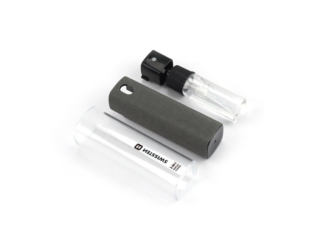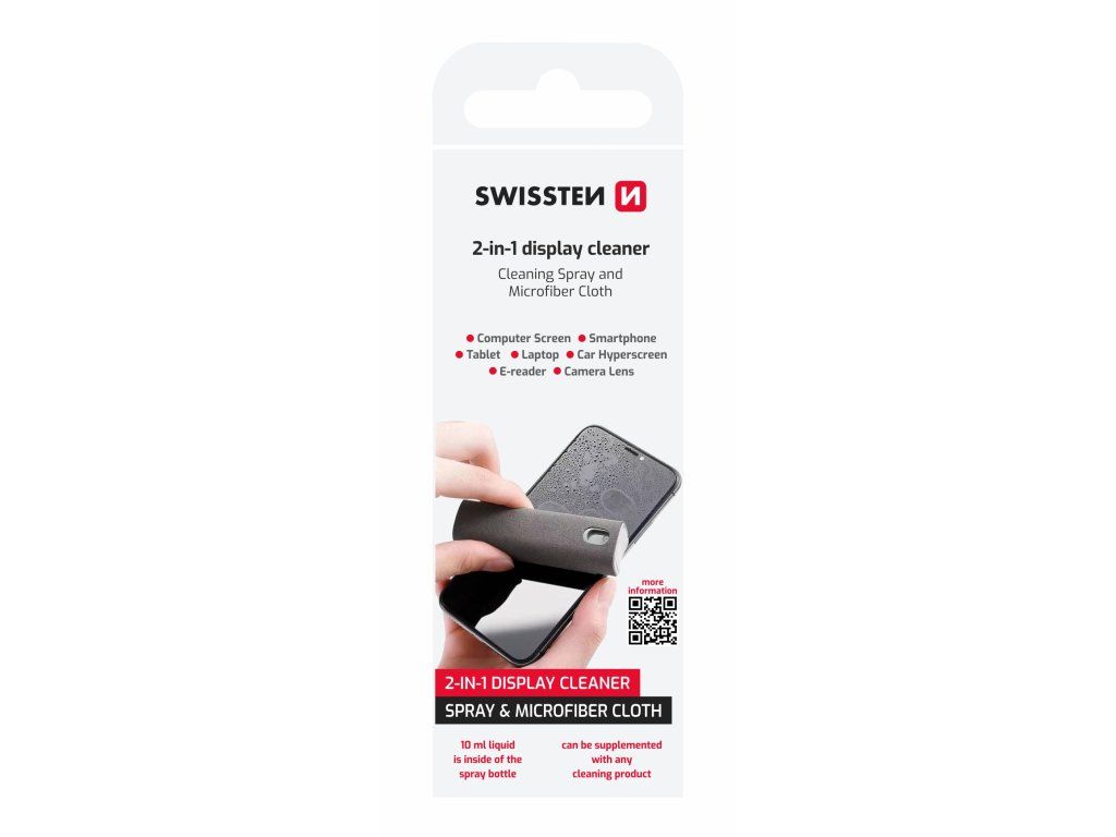 Swissten 2v1: Kapesní čistič displejů (sprej + hadřík)