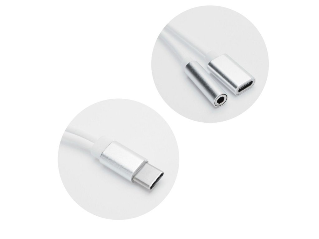 Adaptér AUX 2v1 typ C (samec) na typ C (samice) / Jack 3,5 mm (samice) bílý