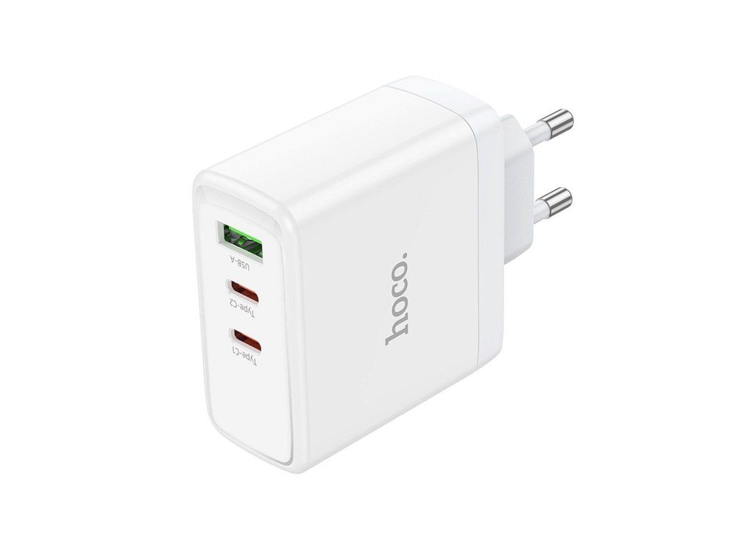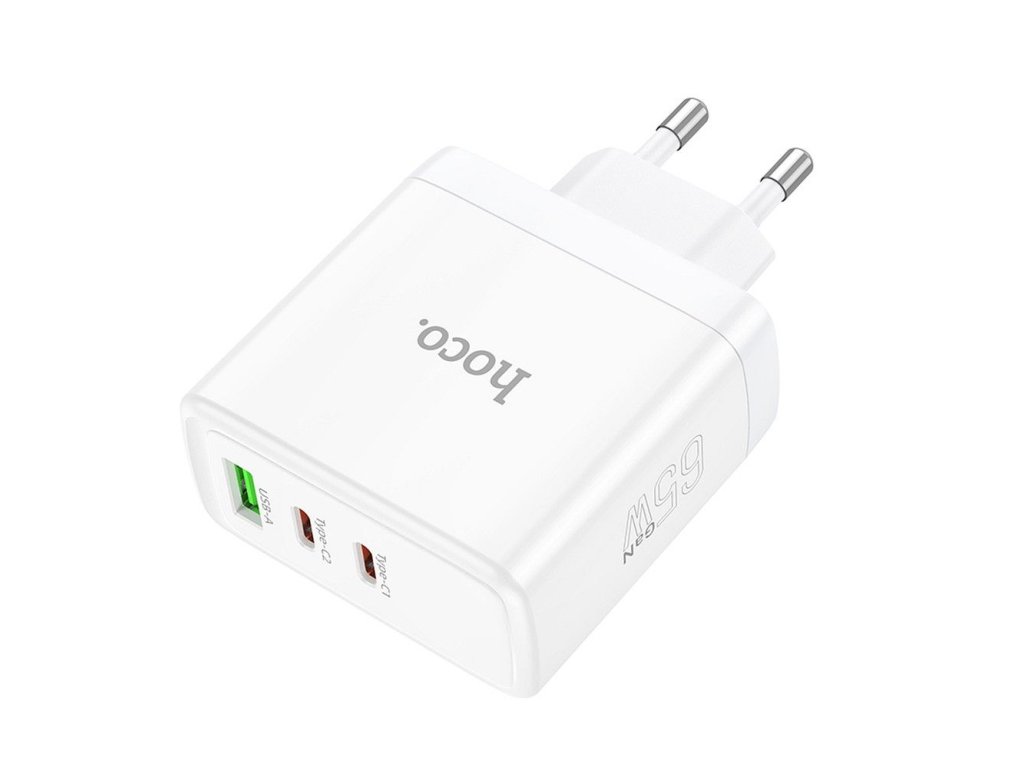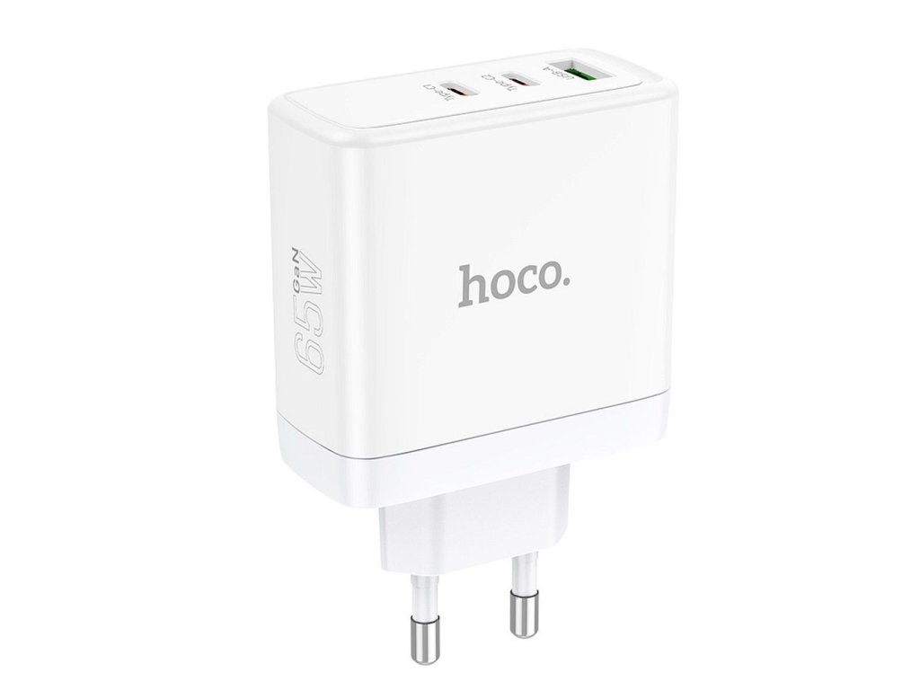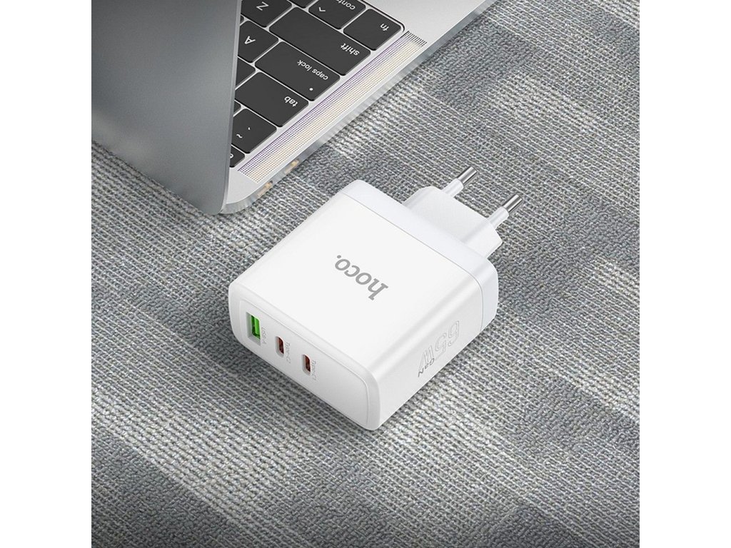 HOCO síťová nabíječka 2 x typ C + USB A QC PD 65W GaN N30 bílá