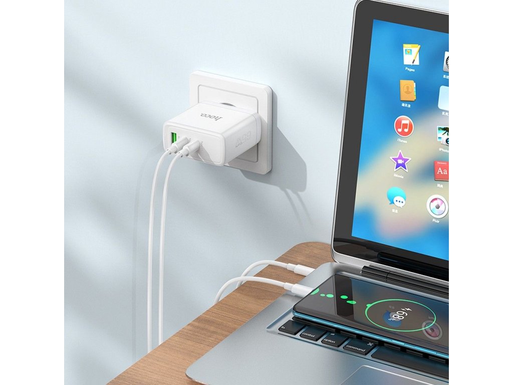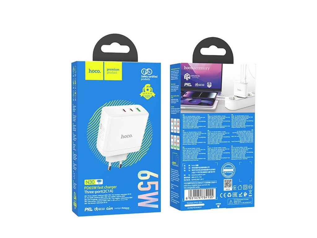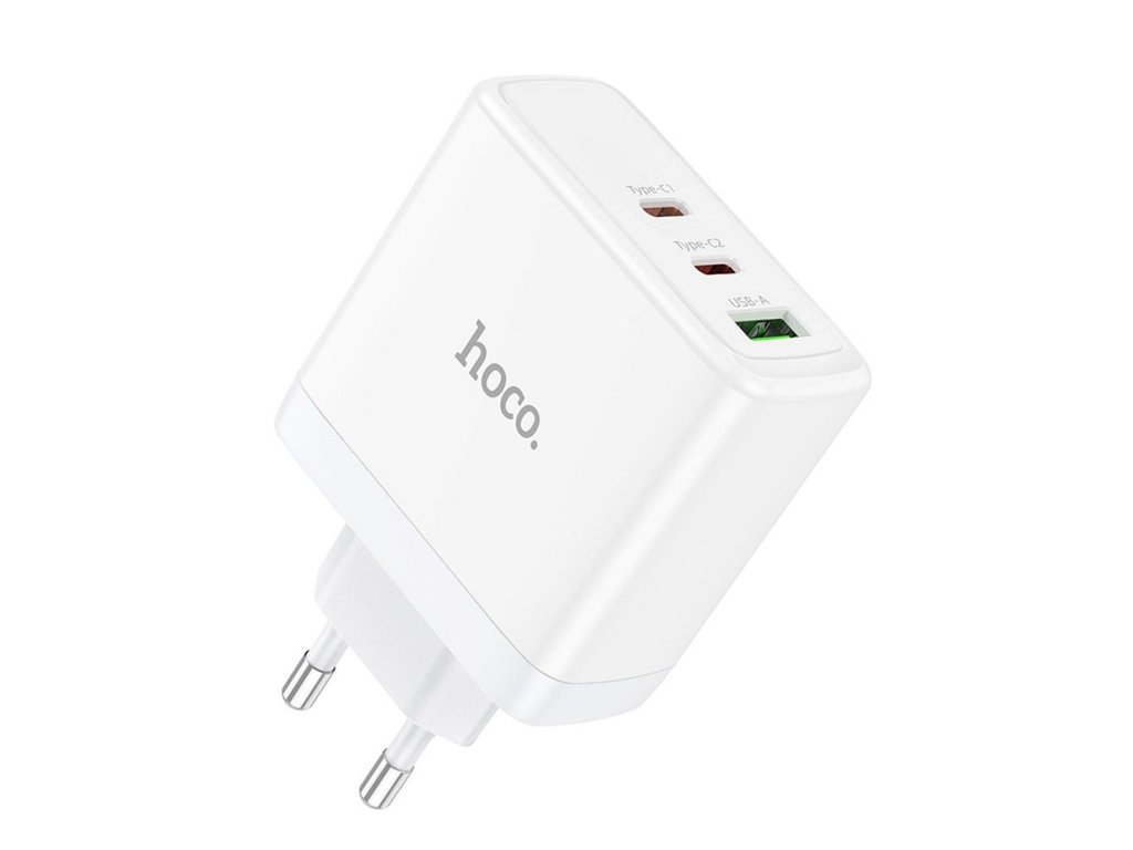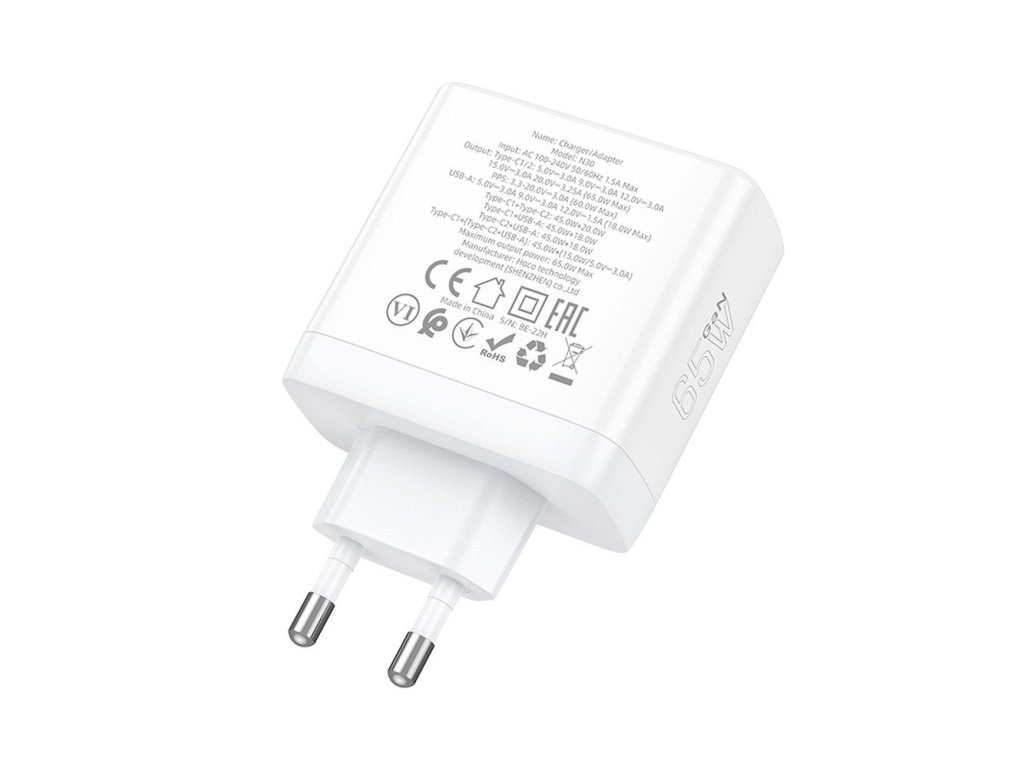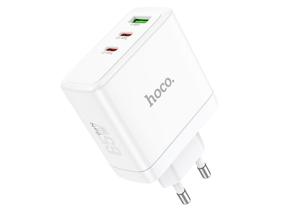 HOCO síťová nabíječka 2 x typ C + USB A QC PD 65W GaN N30 bílá