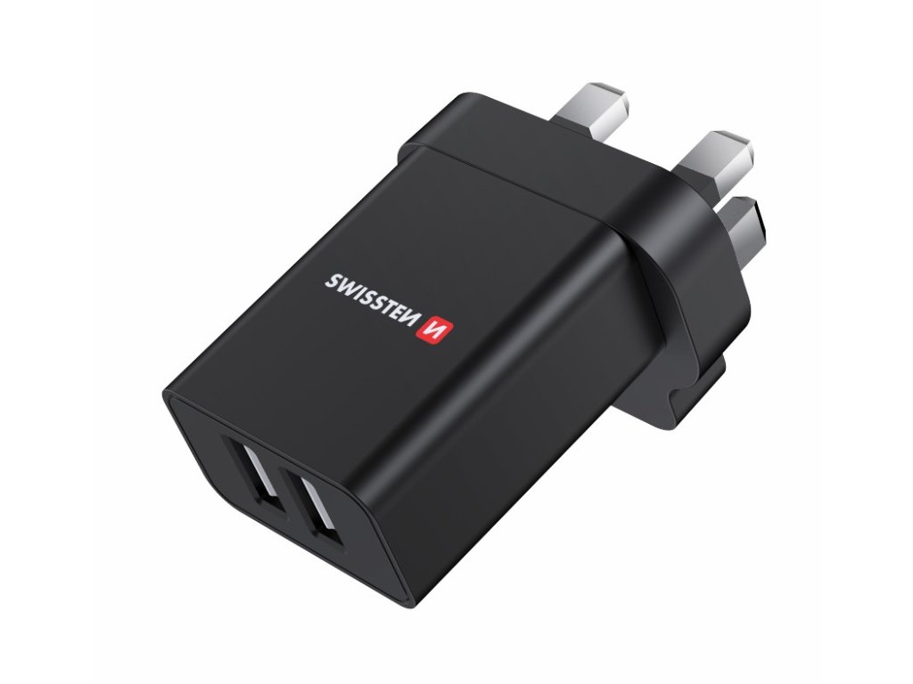 Síťový adaptér Swissten 2× USB 10,5 W Smart IC – UK zásuvka – černý