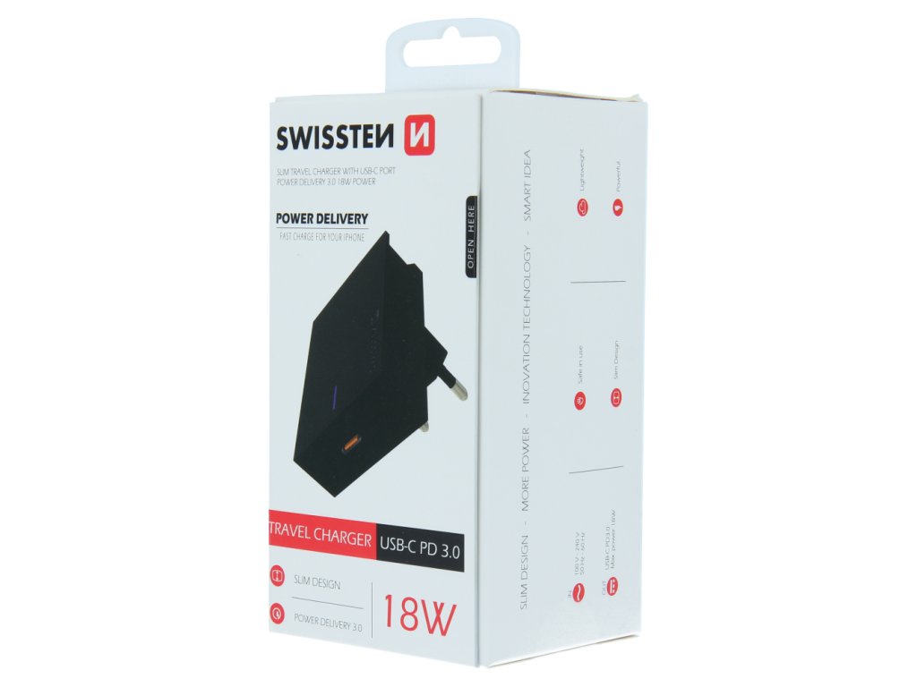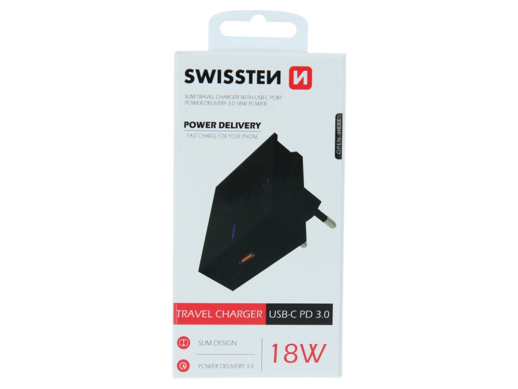 Síťový adaptér Swissten Power Delivery 3.0 18 W – černý