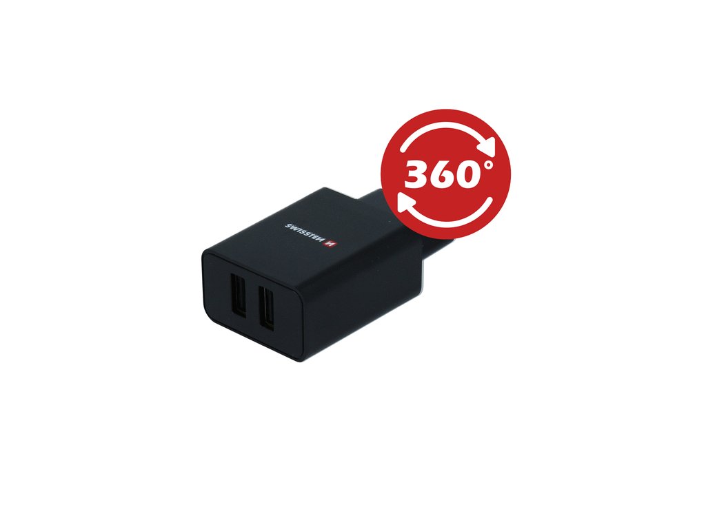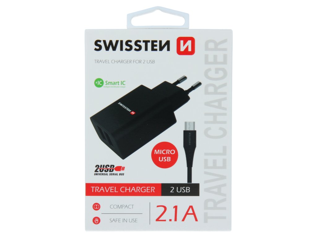 Síťový adaptér Swissten Smart IC 2× USB 2,1 A + microUSB kabel 1,2 m – černý