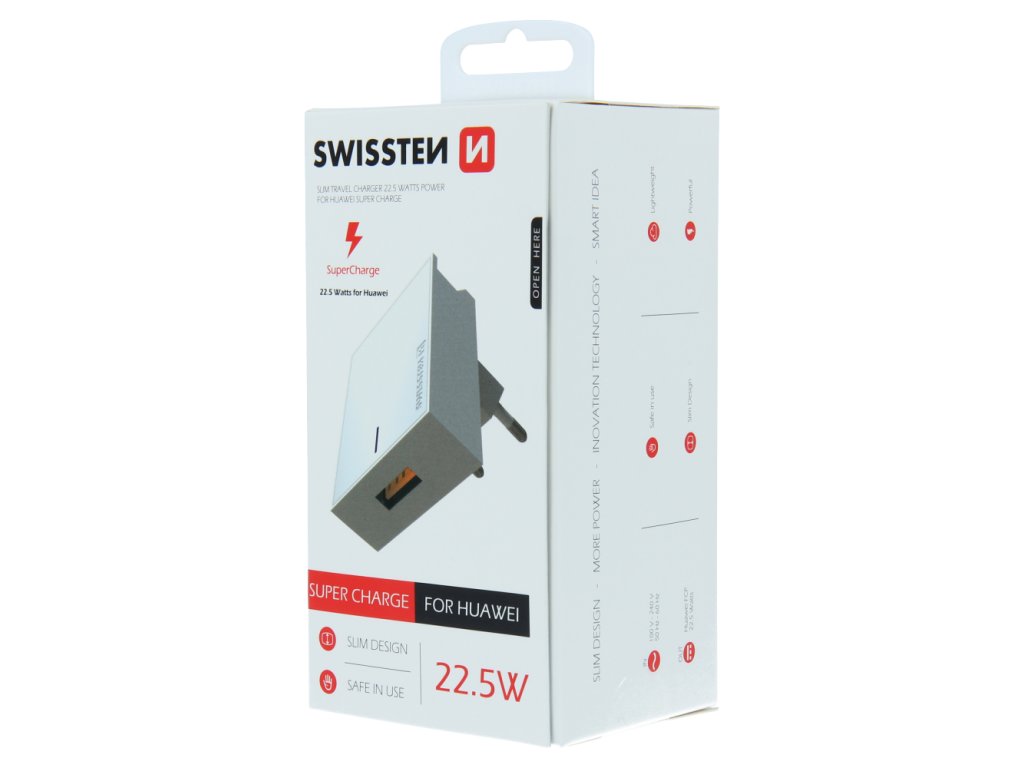 Síťový adaptér Swissten SuperCharge 22,5W je navržen pro pohodlné a rychlé nabíjení vybraných smartphonů Huawei. Díky extra tenkému SLIM provedení a spodnímu umístění USB výstupu je ideální i do obtížně přístupných zásuvek – například za nábytkem nebo spotřebiči.