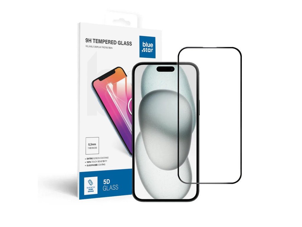 Ochranné tvrzené sklo Bluestar 5D pro Apple iPhone 15 Plus zajistí Vašemu smartphonu efektivní ochranu, vynikající čistotu obrazu a zamaskuje škrábance na displeji. Ochranné tvrzené sklo Bluestar 5D poskytuje ochranu celému displeji telefonu včetně jeho boků. Díky oleofobnímu potahu se nemusíte bát otisků prstů a ulpívání mastnot.