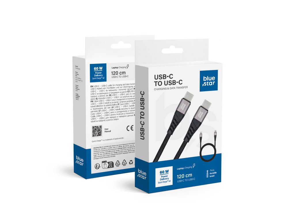 BLUE STAR pletený kabel 3A 60W Typ C - Typ C PD QC4.0 TFK-DC-003 1,2 m černý