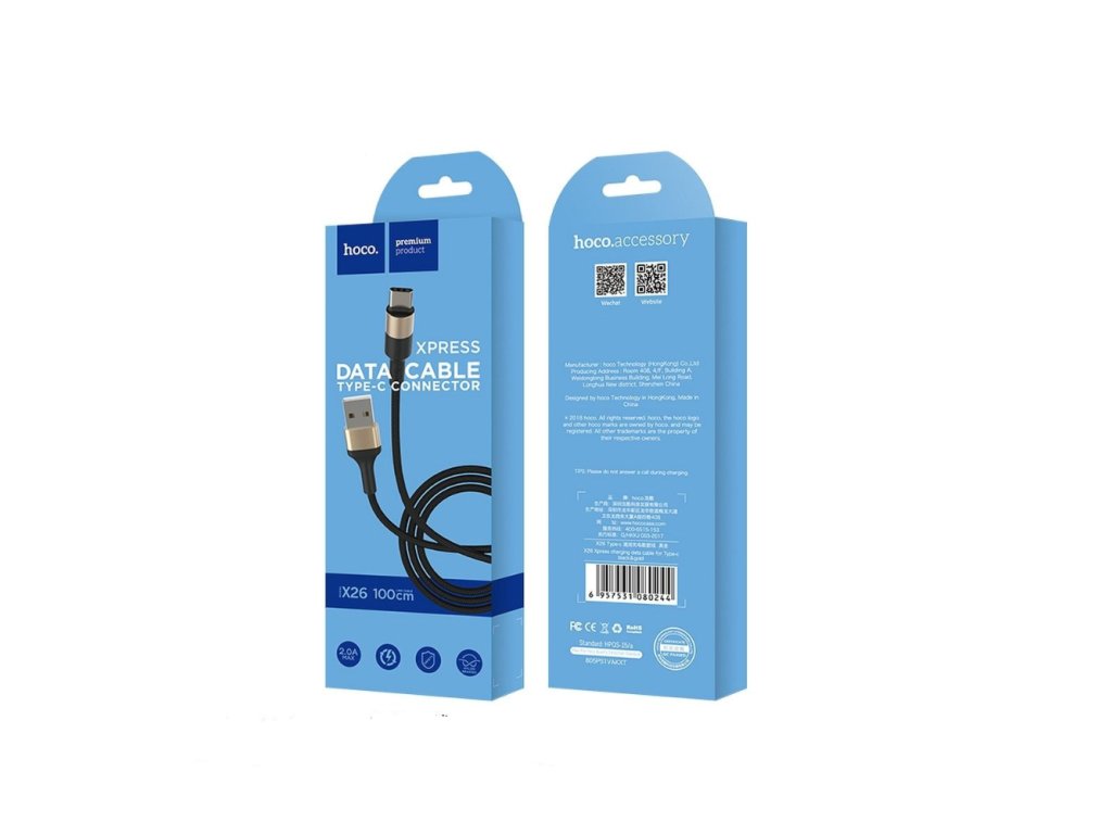 HOCO Kabel USB A na typ C 2A X26 1 m černo-zlatý