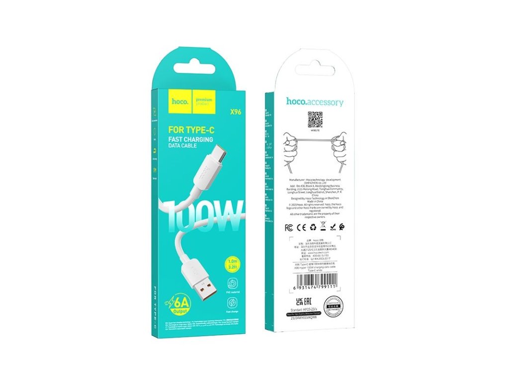 HOCO Kabel USB A na typ C PD 6A 100W X96 1 m bílý