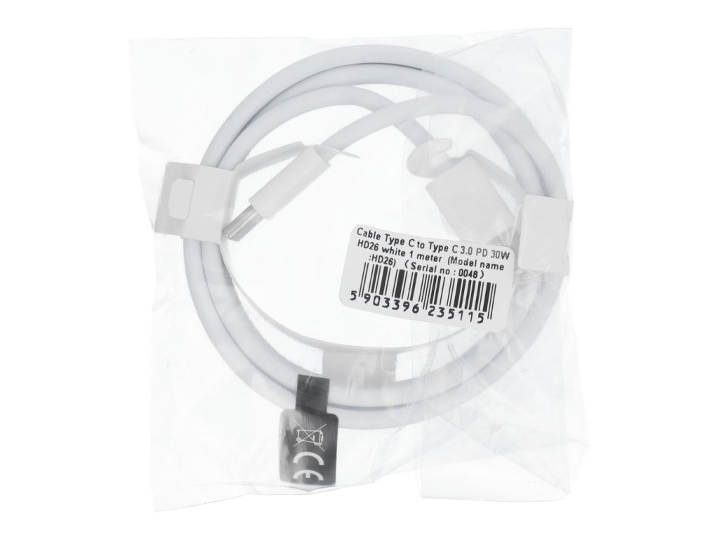 Kabel typ C na typ C PD QC3.0 3A 30W HD26 1 m bílý